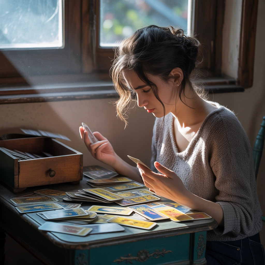 Tu tires parfois les cartes, tu regardes vite fait les mots-clés du livret… et tu restes totalement perdu·e, car tu n’y vois aucun rapport avec ta question.
